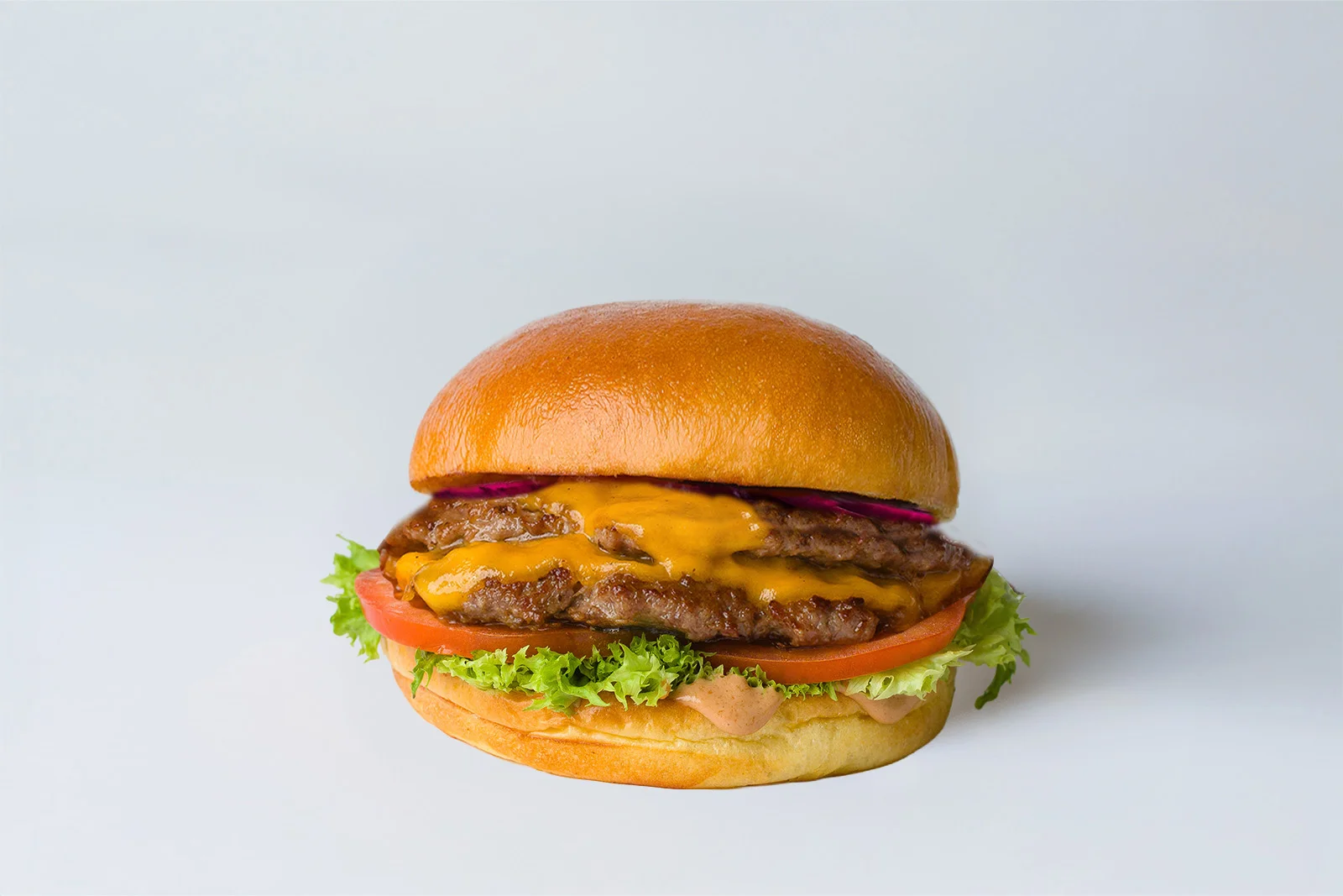 Carn smash 100 % de vedella sobre brioche, amb cheddar fos, salsa original, cogombres, ceba roja fresca i enciam iceberg cruixent. El clàssic dels clàssics